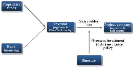 It is a product SINOSURE offers to companies or financial institutions encouraging Chinese companies to grant shareholder loans for their overseas investment projects, or encouraging financial institutions to provide loans or other financing recognized by SINOSURE forms of financing for overseas investment projects of Chinese companies, by assuming the loss of their claims on debts.