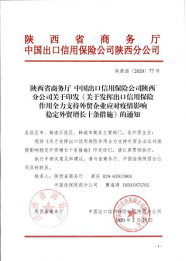 陜西省商務廳、中國信保陜西分公司聯合印發《關于發揮出口信用保險作用全力支持外貿企業應對疫情影響穩定外貿增長十條措施的通知》