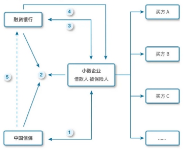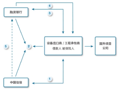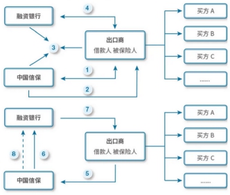 (二)銀行買斷企業的應收賬款,向中國信保投保并向出口企業提供融資。發生保險責任范圍內的損失時,中國信保向銀行進行賠付。