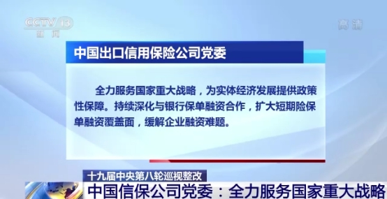 中央電視臺報道中國信保黨委巡視整改情況