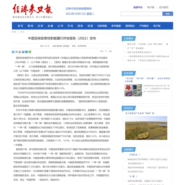 《經濟參考報》:中國信保政策性職能履行評估報告(2022)發布