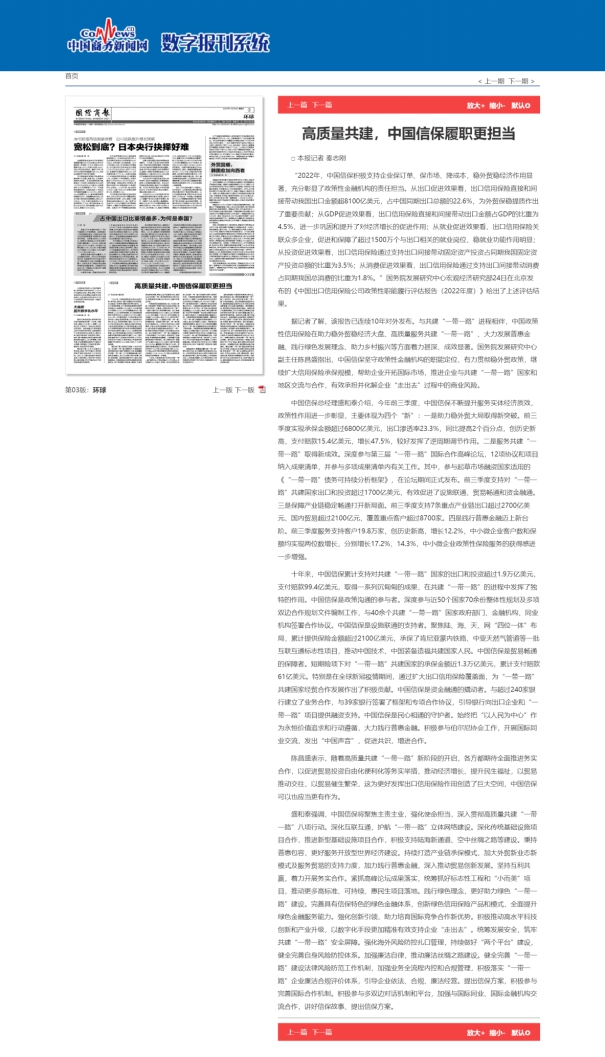 《經濟日報》:2022年度中國信保政策性職能履行評估報告發布