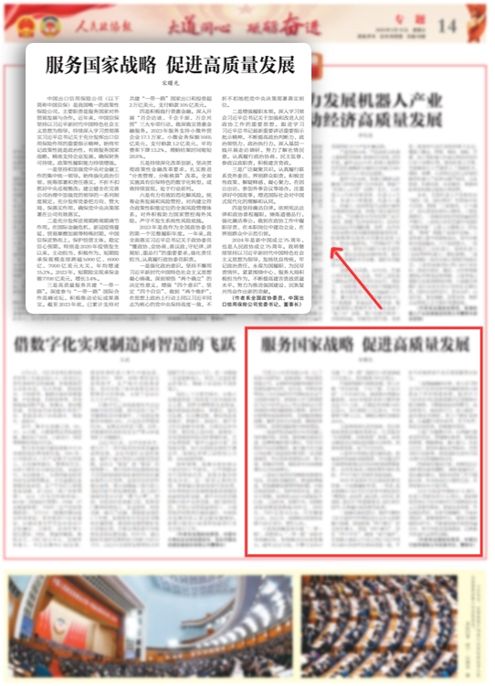 三是高質量服務共建“一帶一路”。深度參與“一帶一路”國際合作高峰論壇,積極推動論壇成果落實。截至2023年底,已累計支持對共建“一帶一路”國家出口和投資超2萬億美元,支付賠款105億美元。